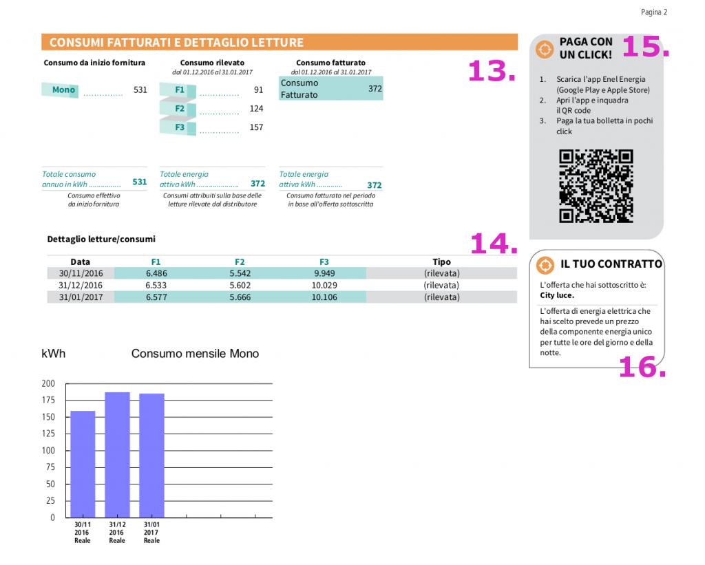 Mesi coperti dalla bolletta. Controlla se i consumi sono rilevati o stimati.
